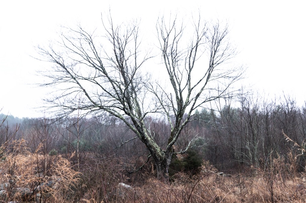 I guess this tree is going to be a scene to which I return. I was hoping for more fog on this drizzly morning, but all I got was this overcast sky. There’s time. I’ll be back here. Also, here’s my first use of the patch tool in Photoshop to remove some distracting branches I couldn’t shoot around.