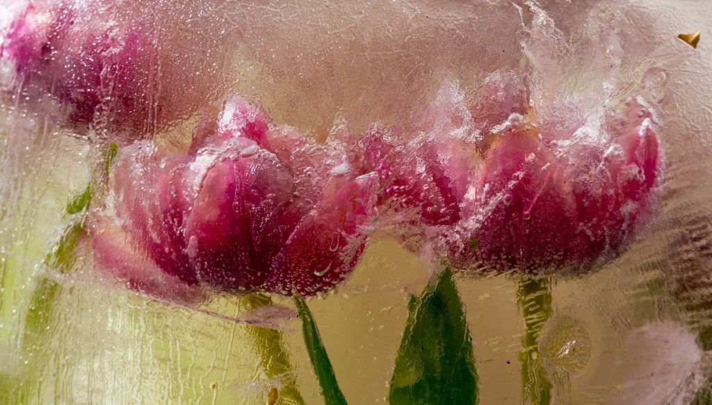 And I don’t know what super clever person made this ice sculpture, which consisted of placing a bunch of flowers upside down in a bucket of water to freeze, but I’m going to call it genius