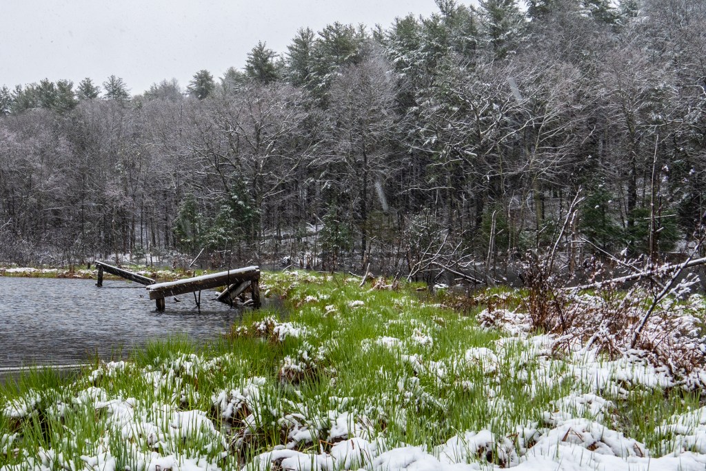 Just one of the many perks of living in New England: Random snow in the middle of April makes for brilliant contrast between the brilliant colors of new growth breaking through and the fresh coating of snow.