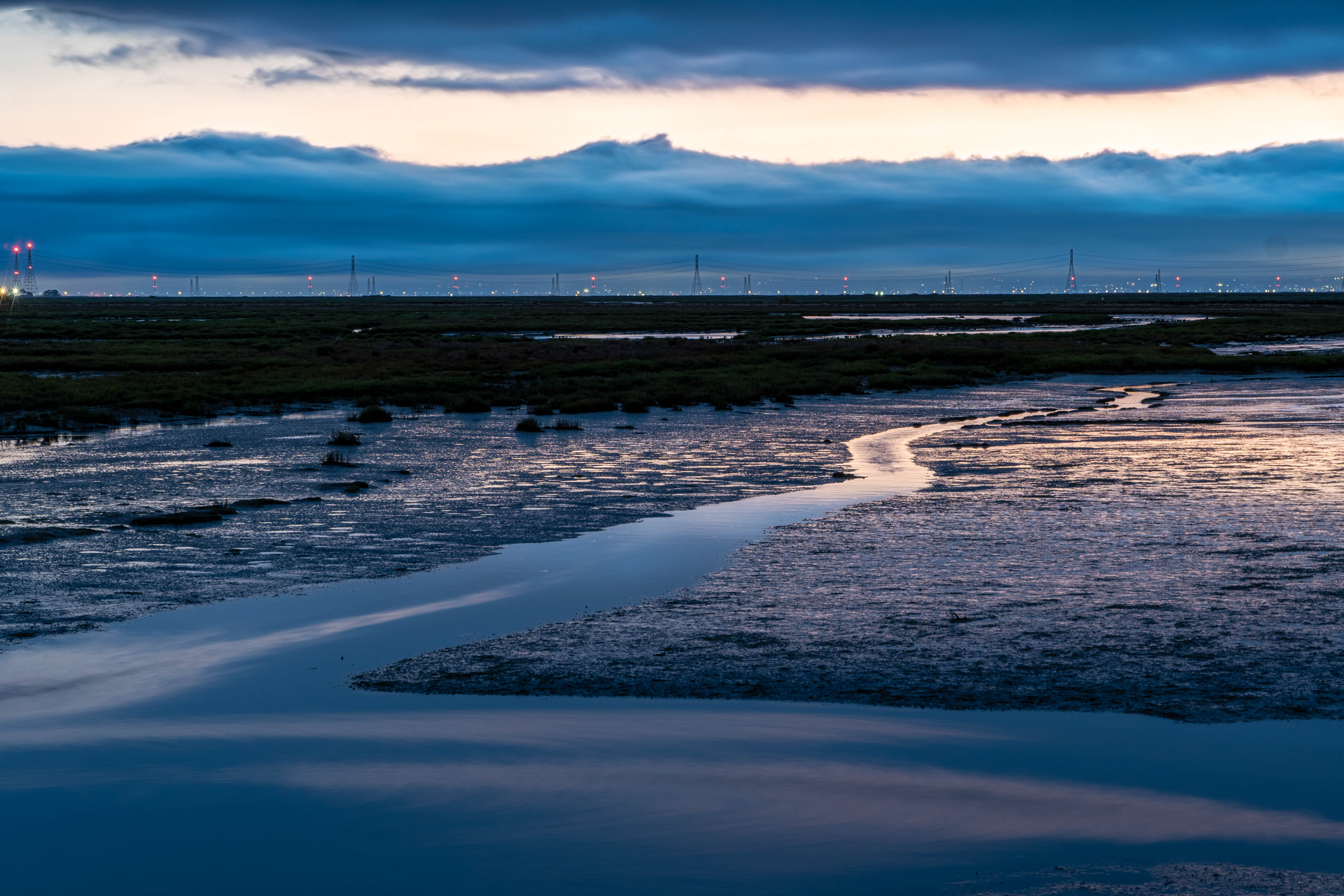 Finally, after working at my company for almost a year, my team had a chance to meet as a group for the first time since the start of the pandemic. For most of us, it was the first time meeting in person ever. The office is in Redwood City, a suburb of San Francisco. And my first morning there, I had to step out early in the morning to see what I could capture by way of sunrises. Each of these is from the same morning, at different spots along the same stretch of mud flat. Each and every one of these feels stunning to me in its own way.