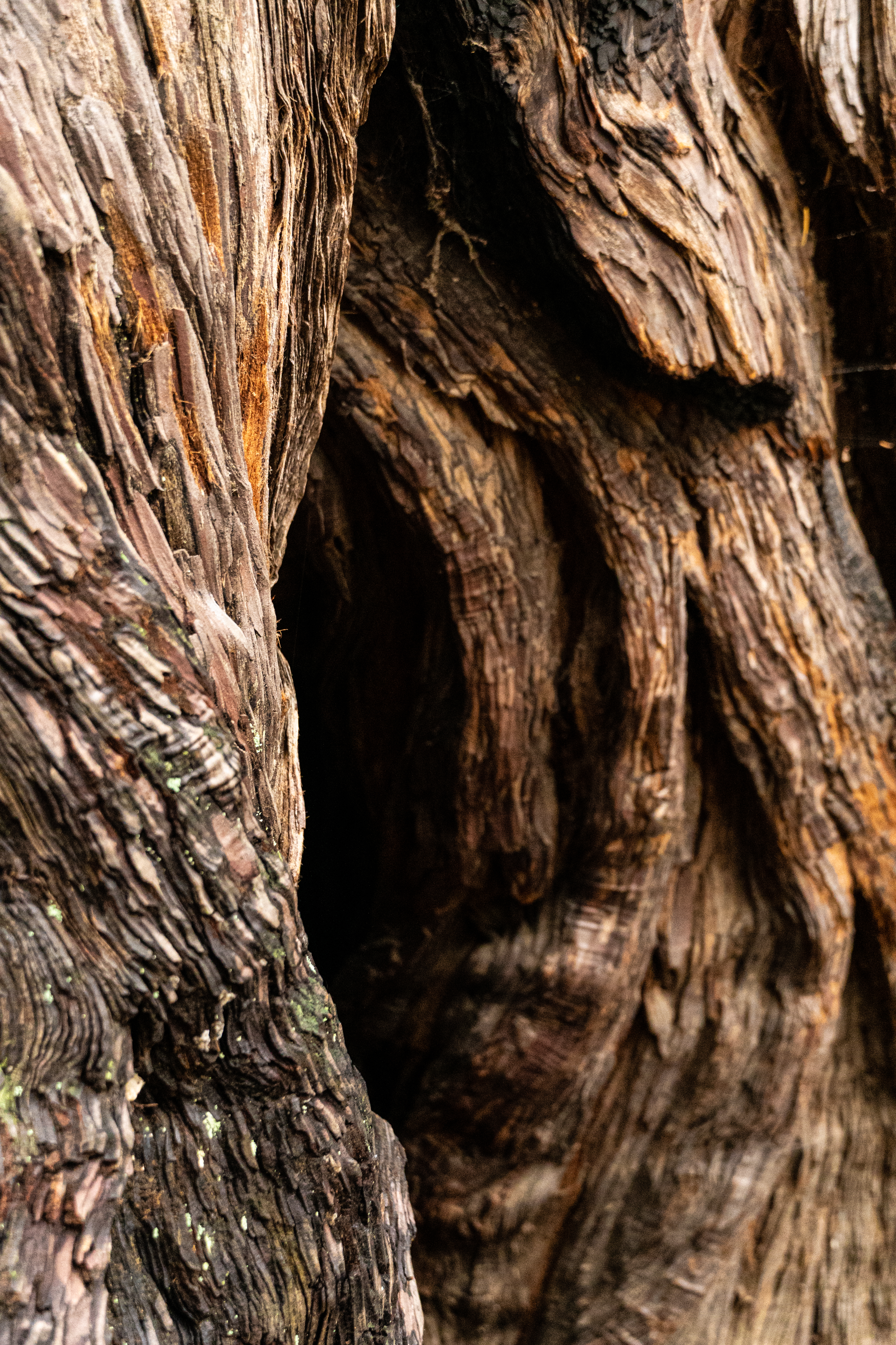 My third and final day in CA: First, what weird and wonderful clouds greeted me for breakfast! And then friends drove me up to Muir woods, where I planned to do the reverse of what I’d done the day before. So I did a loop starting at the visitor’s center to return to base via the Miwok. I love the patterns in the bark here.